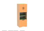В двух цветовых сочетаниях: стойки бук-натур, фасады светло-синие, полки желтые ИЛИ стойки бук-натур, фасады манго, полки салатовые