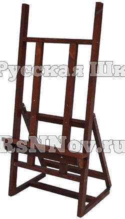 Мольберт, состоящий из большой массивной рамы размером 1,8 х 0,8 м с раскладной опорой и лотком. Рама имеет одно положение по наклону — на 10 градусов от вертикали.