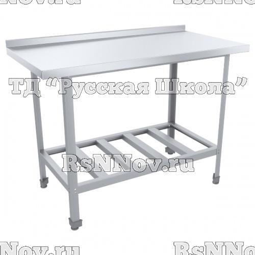 Стол разделочный СТАНДАРТ ЦК с бортом СРОб-12/6СЦК 1200х600х915(935) мм., полка-решетка Столешница изготавливается из нержавеющей стали и дополнительно усиливается ЛДСП. Столы оснащаются полками-решетками или опционально сплошными полками из оцинкованной или нержавеющей стали, которые устанавливаются поверх полки-решетки. Ножки оснащаются винтовыми опорами, позволяющими регулировать высоту стола. Упаковка гофрокартон.
