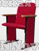 Кресло "Театральное - 4" для зала заседания, чехол кресла "стрелянный" с утяжками на спинке кресла. Боковые части опоры кресла закрыты декоративными экранами, выполненными из фанеры толщиной 9 мм, и обшитыми материалом аналогичным материалу обшивки кресла. Опора кресла "Театральное - 4", изготовлена из квадратной трубы 25 х 25 мм. с откидным сиденьем на металлокаркасе и деревянными подлокотниками. Все металлические части кресла покрыты полимерно порошковой краской. Производится в различных вариантах секционности, без ограничения количества мест в секции. Для мобильного кресла "Театральное - 4" или многоместной секции из кресел этой модели - предусмотрено два варианта установки: как с креплением к полу, так и без крепления (двух, трех и четырех местную секцию из кресел можно переносить). Конструкция опоры кресла позволяет производство кресла для залов с различным уклоном пола. Мягкий элемент ППУ - 50 мм. Обивочный материал, мебельная ткань - капровелюр, кож. зам.