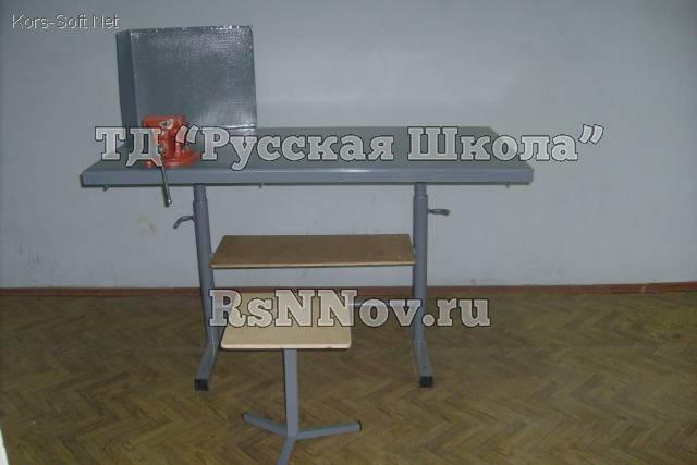 ВС-У-Пр 1000/500/660-900. Верстак слесарный учебный, с пружинной регулировкой подъема столешницы, с полкой, в комплекте с табуретом