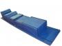 В комплекте 11 матов различной конфигурации и 2 мата (основа): квадратный мат 100х80х40 -1шт., квадратный мат 75х80х30 -1шт., квадратный мат 50х80х20 - 1 шт. , прямоугольный треугольник 100х80х40 - 2шт., прямоуголный треугольник 75х80х30 - 2шт., прямоугольный треугольник 50х80х20 - 2шт., полувалик 50х80х25 - 2 шт., мат 250х100х6 - 2 шт. Материал: мат основа - ППЭ, остальные части ППУ, винилискожа. Скрепляются между собой липкой лентой.