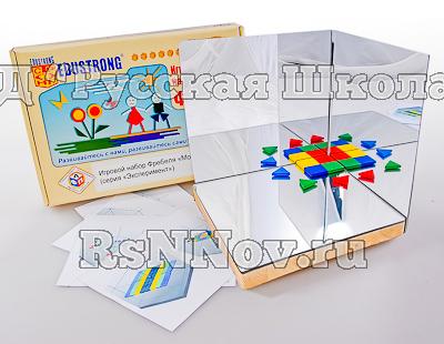 Комплектность: карточки-схемы – 4 шт., зеркальный уголок – 1 шт., квадрат – 28 шт., ромб – 35 шт., треугольник равносторонний – 14 шт., круг – 14 шт., точка – 17 шт., руководство по эксплуатации – 1 шт.