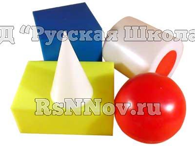 Комплектность: куб, конус, шар, цилиндр, полый цилиндр, параллелепипед - по 1 шт.