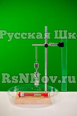 Комплектность: штатив лабораторный – 1 шт., муфта – 1 шт., лапка – 1 шт., пружина (жесткостью 50±2 Н/м) – 1 шт., грузы (100±2 г) – 3 шт., динамометр (5 Н, цена деления 0,1 Н) – 1 шт., линейка (300 мм, цена деления 1 мм) – 1 шт., лоток круглый пластиковый (Ø 29,0±0,5 см) – 1 шт., руководство по эксплуатации – 1 шт.