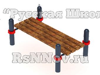 ГТО комплекс состоит из 4 опорных столбов высотой 500 мм. В комплексе установлена лавка, которая фиксируются к опорным столбам при помощи хомутов и перекладин длиной 650 мм..